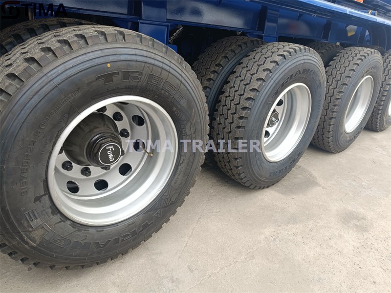 نصف مقطورة قلابة على شكل حرف U لها 4 محاور ، قدرة تحميل لكل محور تبلغ 16 طنًا. أقصى وزن للنقل 80 طن. يمكن للعلامة التجارية المحور استخدام العلامة التجارية المتينة ZY و FUWA و BPW وغيرها.